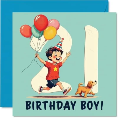 21st Birthday Cards for Men Balloon Boy Happy Card 21 Year Old Man Friend Brother Grandson Cousin, 145mm Bday Greeting