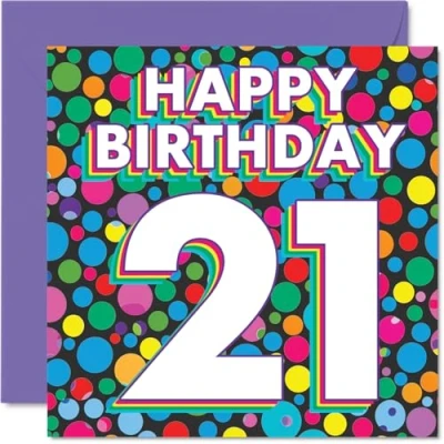21st Birthday Cards for Women Men Funky Rainbow Dots Happy Card 21 Year Old Woman Man Nephew Daughter Granddaughter Friend, 145mm Bday Greeting