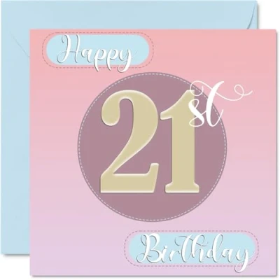 MAKE HER SMILE WITH THIS UNIQUE BIRTHDAY CARD: This exceptional quality birthday card for her shows the design 'Happy 21st Birthday'. If you are looking for special birthday greetings cards for Women birthday card then then this happy birthday card is bound to make her smile. Not just for birthday gifts for Women this could also be for Auntie, Colleague, Cousin, Daughter, Friend, Granddaughter, Niece or Sister. WHAT DO YOU GET: The card is printed on one side and BLANK ON THE INSIDE to allow you to write your very own message. The unique fun design is printed on a specially sourced and environmentally responsible board. At 360 microns thick the natural white one-sided gloss board has a quality look and feel. Supplied with a coloured gummed envelope to complement the design and ready to be sealed and sent in the post. Great Auntie birthday cards, 21st birthday card, Colleague birthday card. NO INK SMUDGES: There is nothing worse than writing inside a card to find that the shiny surface makes the ink smudge. This is why we use a high quality one sided coated board. The uncoated side will absorb more of the ink from your pen to make smudging a thing of the past. 21st Birthday card for Cousin, 21st Birthday card for Daughter, 21st Birthday card for Friend. SIZES: Greeting Card = 145mm x 145mm, Envelope = 155mm x 155mm, Card Thickness = 360 micron. Granddaughter 21st birthday card, birthday cards for Niece, cute birthday cards for Sister, 21st birthday card Auntie, Colleague 21st birthday card. MADE AND QUALITY CHECKED IN THE UK: We print and manufacture all our products right here in the UK so you can be sure of a fast turnaround and a product that is expertly made. Using environmentally responsible premium board our card is conscious of the responsible management of the world's forests - perfect birthday cards for Women, fun birthday cards for her, Colleague 21st birthday cards, female birthday cards.
