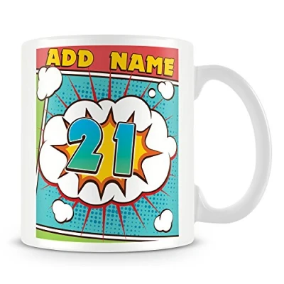 21st Birthday Gift for Men Personalised Mug/Cup Add Name Comic Boom Design Blue