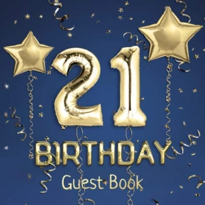 21st Birthday Guest Book: Message Logbook and Book for Party 100 Pages Guests to leave their Comments & Wishes Blue Cover with Golden Balloons