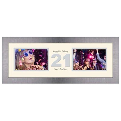 21st Birthday Photo Frame Twenty First Gift Takes Two 6x4 Landscape Photos 1221A (Brushed Silver Finish Cream Mount Grey Inside)