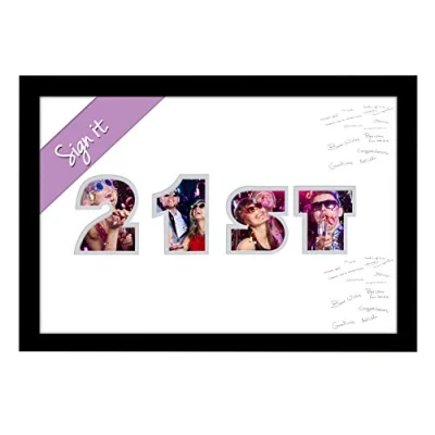 21st Birthday Signing Personalised Autograph Signature Guest Book Photo Frame To Sign (White Mount with Black Finish Frame)