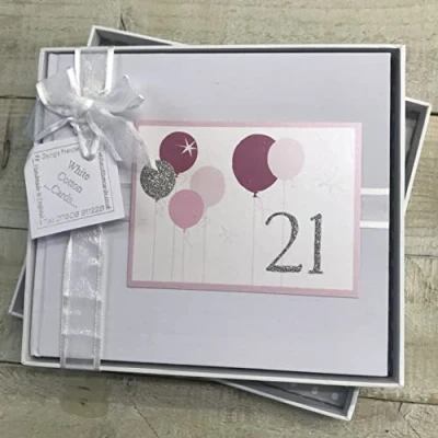 21ST Birthday. Special Occasion. Guest Book. Pink Balloons Design. Hand Finished by WHITE COTTON CARDS (BALP21G)