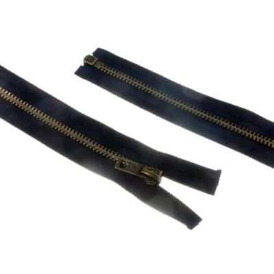 22" 56cm Antique Brass Metal Open End Zips Navy Blue per Single Zip