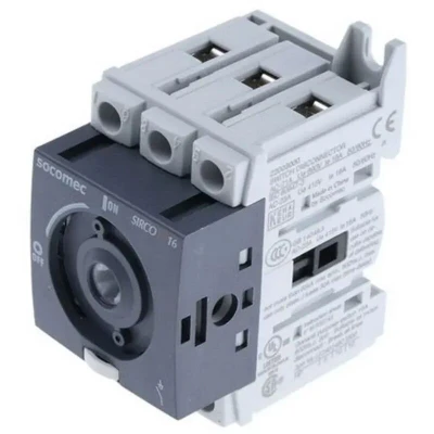 22003000 disconnectors, three pole 1 NO/3 nc (auxiliary), 16 a, 7.5 kW Socomec