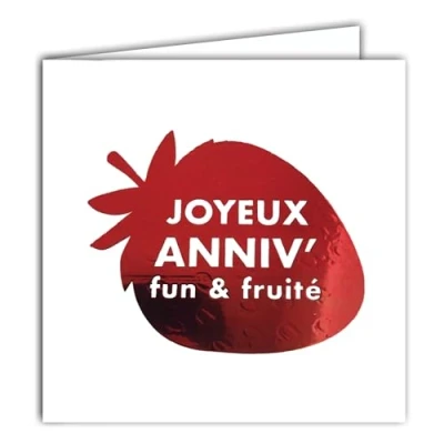 22208 Happy Birthday Fun and Fruity Square Card on a Bright Red Strawberry with White Envelope 15 x cm Creation Edition Print Made in France Dream of Words Collection