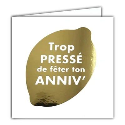 22209 Square Card Too Pressed to Celebrate Your Birthday on a Shiny Golden Lemon with White Envelope 15 x cm Creation Edition Print Made in France Dream of Words Collection