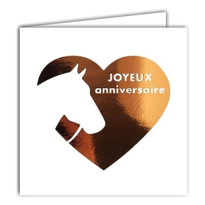 22218 Happy Birthday Square Card Horse Head on Heart Orange Shiny Copper with White Envelope 15 x cm Creation Edition Print Made in France Dream of Words Collection