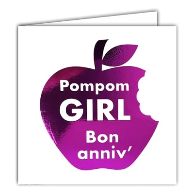 22226 Happy Birthday Cheerleader Glossy Fuchsia Pink Square Card with White Envelope 15 x cm Creation Edition Print Made in France Dream of Words Collection