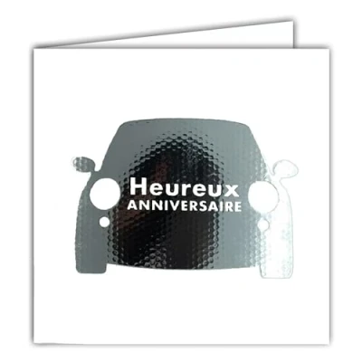 22234 Happy Birthday English Car Glossy Silver Square Card with White Envelope 15 x cm Creation Edition Print Made in France Dream of Words Collection