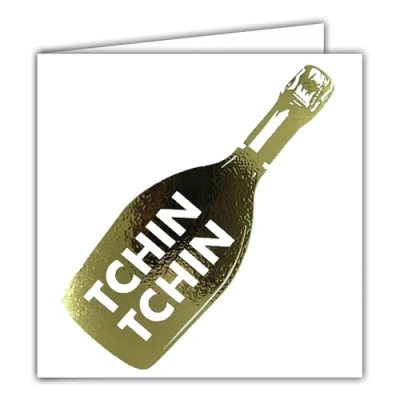22238 Square Card Tchin Champagne Bottle in Shiny Gold with White Envelope 15 x cm Festive Day Congratulations Best Wishes Happiness Joy Love Health Toasting Made France