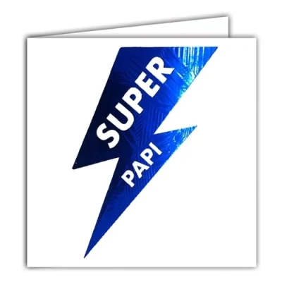 22251 Square Card for a Super PAPY BON Papa Grandpa Lightning Rock Shiny Blue with White Envelope 15 x cm Birthday or Party Creation Edition Print Made in France