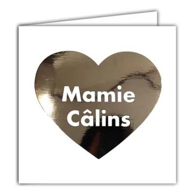 22252 Square Card for Grandma Bonne Maman MémÉ Cuddles Heart in Shiny Rose Gold with White Envelope 15 x cm Birthday or Party Design Printed Edition Made France