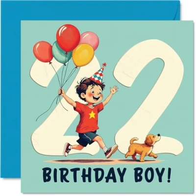 22nd Birthday Cards for Men Balloon Boy Happy Card 22 Year Old Man Brother Son Friend Grandson, 145mm Bday Greeting