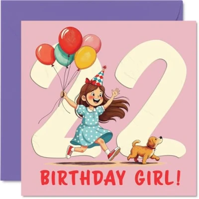 22nd Birthday Cards for Women Balloon Girl Happy Card 22 Year Old Woman Colleague Friend Niece Auntie, 145mm Bday Greeting