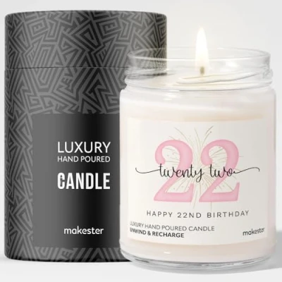 22nd Birthday Gifts Luxury Soy Wax Vanilla, Jasmine, Sugared Almond Makester