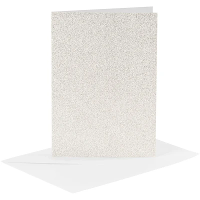 23028 Cards and Env 10.5x15cm 4pk white glitter