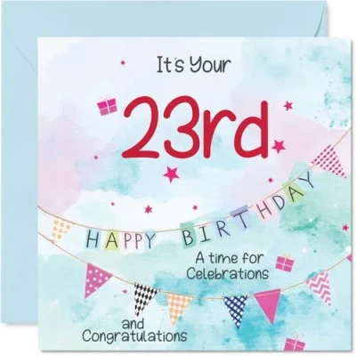 23rd Birthday Cards for Men Party Bunting Happy Card 23 Year Old Man Son Uncle Brother Friend, 145mm Bday Greeting
