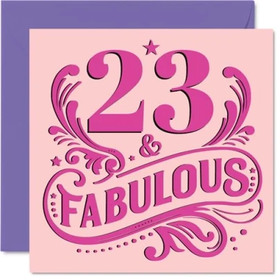 23rd Birthday Cards for Women Fabulous Happy Card 23 Year Old Woman Niece Auntie Colleague Friend, 145mm Bday Greeting