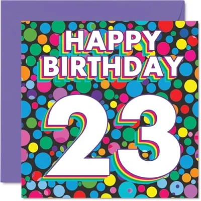 23rd Birthday Cards for Women Men Funky Rainbow Dots Happy Card 23 Year Old Woman Man Brother Son Daughter Nephew, 145mm Bday Greeting