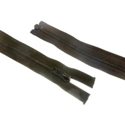 24" 61cm Antique Brass Metal Open End Zips Khaki Green per Single Zip