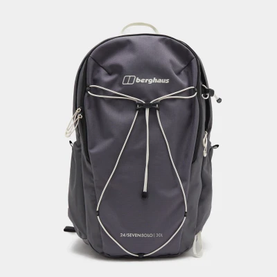 Ready for trails, travel, and everyday adventures, the Berghaus 24/7 Solo 30L Rucksack is built to keep up with your busy lifestyle on and off the trail. Featuring an updated design and up to 30 litres of space, the 24/7 backpack utilises Flow Technology, a ventilated back system which delivers all-day carrying comfort and breathability. The built-in laptop sleeve makes it ideal for school or office commute, with stretchy side pockets and a secure front zip pocket keep essentials secure and to hand. Heading out of the city? Attached to the pack are two walking pole holders for days on the hills, as well as an adjustable sternum strap to ensures a perfect fit. Flow Technology ventilated back system Hydration compatible 2x Walking pole holders Front access pocket with concealed zip 2x Stretchy side pockets Large zipped internal compartment Laptop sleeve Adjustable shoulder straps Adjustable sternum strap Internal key clip Sturdy grab handle Capacity: 30 Litres Dimensions: 52 x 27 x 26cm Material: 100% Polyester Weight: 632g