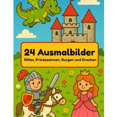 24 Ausmalbilder: Ritter, Prinzessinnen, Burgen und Drachen