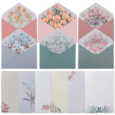 Stationery Paper and Envelopes Set: This package includes 24 sheets of lined stationery paper and 12 envelopes in 6 different styles. The diverse quantity and designs cater to various preferences and usage needs. Practical Writing Line Design: The stationery paper and envelopes are made from high-quality paper material, sturdy, and smooth, featuring practical writing lines for easy writing. Whether you use a pencil, ballpoint pen, or gel pen, it provides a smooth and comfortable writing experience. Lovely Flower Patterns: Each sheet of stationery paper showcases different charming floral patterns, while the envelopes feature beautiful flowers when unfolded. The cute and fresh designs with vibrant colors are perfect for writing short stories, poems, or letters. Perfect Size: Vintage stationery paper measures 19.5 x 13.7 cm / 7.67 x 5.39 inches, and envelopes measure 16.1 x 11.4 cm / 6.33 x 4.48 inches, offering standard and lightweight portability. Suitable for handwriting, inkjet, and laser printing, great for writing letters, invitations, and more. Ideal Choice for Invitations: The floral stationery paper and envelopes exude elegance and fashion, making them an ideal choice for invitations. They are perfect as note cards, invitations, or thank-you letters for baby showers, Mother's Day, Valentine's Day, anniversaries, birthdays, and more.
