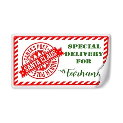 24 Personalised Christmas Special Delivery Stickers. Printed on A4 Sheets - Can be personalised with one name per order. Lovely finishing touch to your presents. A Lovely way to make your Christmas that extra bit MAGICAL! Individual sticker size is approximately 6.4 x 3.5 cm. Good quality, professionally designed labels, to make your Christmas a little more MAGICAL! Personalisation Information required: Name for the Sticker. This can be left in the customisation section. Use 'Customize Now' button, add the personalization you require. Select 'Add to Basket' and then Checkout.