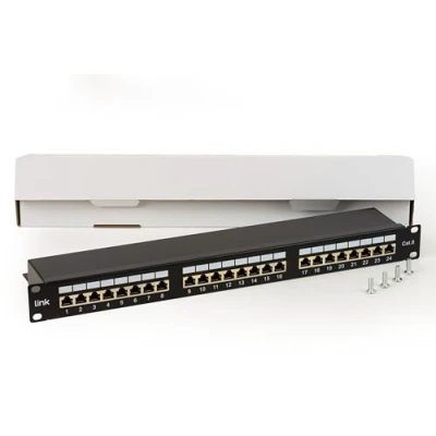 CAT 6 Shielded Patch Panel with 24 RJ45 Network Ports Built to E Class Link Performance requirements, for up to 250MHz, ISO/IEC 11801 and EN 50173 and complies with 802.3at POE+ and 802.3af POE standards. For installation in 19" cabinets. RJ45, 8P8C Sockets Cable installation through LSA modules, colour coded according to EIA/TIA 568 A & B