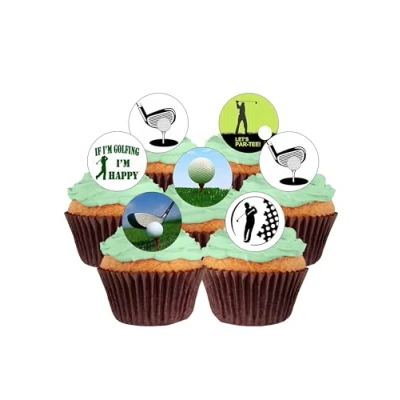 24 Precut Golf Edible Wafer Paper Cake Toppers You will receive 24 pre cut toppers - Mix of images As shown in the Picture Precut out for you in 4cm circles and ready to place straight on your cakes Great images printed with edible inks - perfect for golf fans Fully Edible - Wafer Paper ingredients - Water, Sunflower Oil and Potato Starch