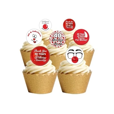 24 Pre Cut Red Day Celebrating 40 years Edible Wafer Paper Round Cake Toppers Decorations Great for Fundraising
