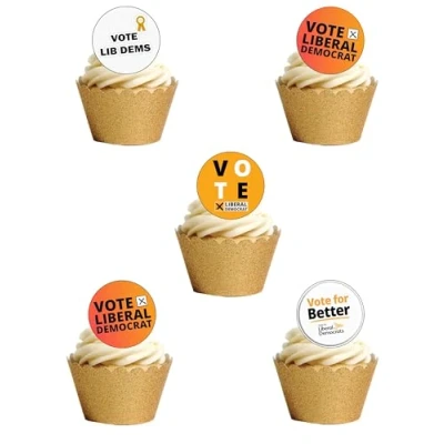 24 Pre Cut Vote Liberal Democrats Lib Dems UK Election Themed Edible Wafer Paper Cake Toppers Decorations