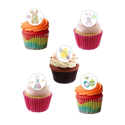 24 Precut 40mm Round Cute Clip Art Chicks and Bunnies Theme Edible Wafer Paper Cake Toppers You will receive 24 pre cut out toppers with the designs as shown in the picture Printed on quality wafer paper with edible inks and pre cut out for you in 40mm circles These cake toppers are pre cut out in 40mm circles and ready to place straight on your cakes Fully Edible - Wafer Paper ingredients - Water, Sunflower Oil and Potato Starch, Manufacturer: Orange Trading LTD Dartmouth