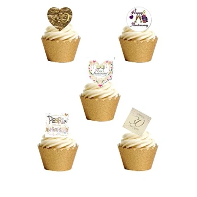 24 Stand Up Pearl Wedding Anniversary Edible Wafer Paper Cake Toppers You will receive different images - As shown in the Picture- fully edible printed with edible inks These toppers require cutting out with sharp scissors and are then ready to place straight on your cakes Really lovely images , perfect for any 30th Wedding Anniversary celebration Fully Edible - Wafer Paper ingredients - Water, Sunflower Oil and Potato Starch, Manufacturer: Top That
