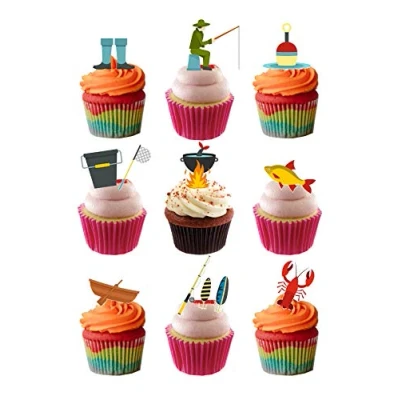 24 Stand Up Fishing Angling Themed Edible Wafer Paper Cake Toppers Decorations Just cut them out and then push them into buttercream icing and they will stand up You will receive 24 Stand Up Fishing Angling Themed Images printed with edible ink on wafer paper which REQUIRE CUTTING OUT and are then ready to place straight on your cakes Fully edible with a shelf life of at least 12 months from purchase if kept dry Fully Edible - Wafer Paper ingredients - Water, Sunflower Oil and Potato Starch, Manufacturer: Orange Trading Dartmouth LTD