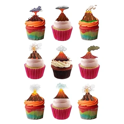 24 Stand Up VOLCANO Themed Edible Wafer Paper Cake Toppers Decorations