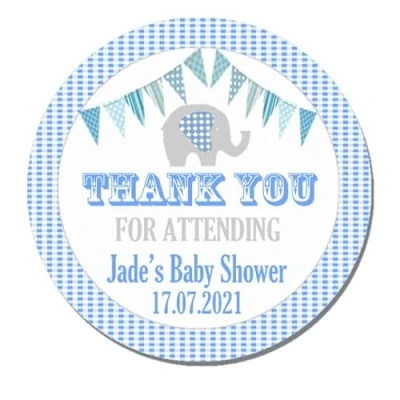 24 x Personalised Baby Shower Stickers for Party Thank You Sweet Cone Bags Elephant Theme (Blue)