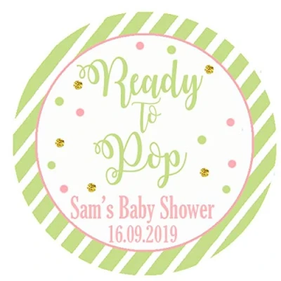 24 x Personalised Baby Shower stickers For Party Thank You Sweet Cone Bags Ready to Pop Round (Green)