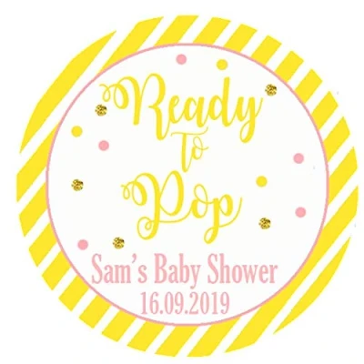 24 x Personalised Baby Shower stickers For Party Thank You Sweet Cone Bags Ready to Pop Round (Yellow)