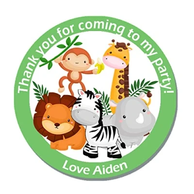 24 x Personalised Jungle Animal Birthday Gift Stickers Thank You, Favour, Birthday, Party, Themed Event (Design 1)