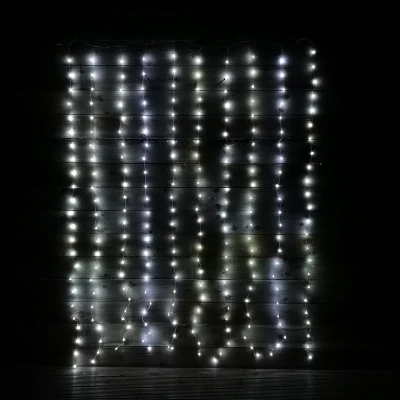 General description Brighten up your home this Christmas with these enchanting LED Curtain lights. With a lit space of 2m x 1.5m, these lights are perfect for any festive display. They can be used year-round, providing ambient lighting and creating eye-catching scenes. Featuring 240 non-replaceable Static Cool White LEDs, these lights are ideal for placement around your home or garden, whether on a mantelpiece or wall. Technical specifications Dimensions: 2m x 1.5m Number of LEDs: 240 LED Color: Cool White Lead Length: 5m Power Source: Mains operated Usage Suitable for indoor and outdoor use (transformer must remain dry at all times). Fitted with a selector button offering 8 different settings. Other information Watch Video