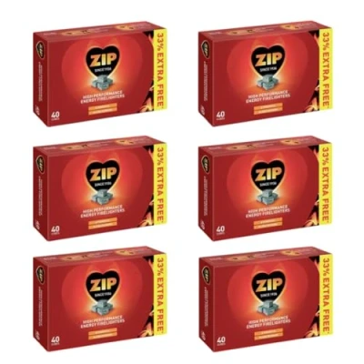 High performance fireplace lighter. Powerful firelighters from Zip. Long burning time. Assortment from 2017. This package contains 6 boxes with a total of 240 powerful firelighter cubes.