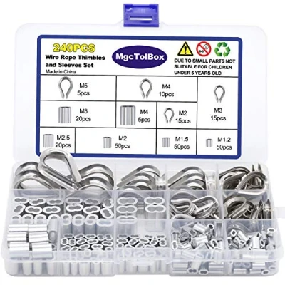 【Product Material】:Thimbles Are Made of 304 Stainless Steel, Offers Good Corrosion Resistance and Rust Resistance; Crimping Loop Sleeve Are Made of Aluminum, Hard and Sturdy, Allow You to Use for a Long Time. 【Product Feature】:Designed Thimble and Crimping Loop Sleeve Can Help to Keep Cable From Flatting Around the Eye to Prevent Crushing or Over Stressing Wire Rope at the Terminal End Which is Used to Protect the Eye of a Wire Rope or Sling. 【Various Styles】:6 Size of M1.2, M1.5, M2,M2.5,M3,M4 Total 195PCS;4 Size Steel Thimble M2,M3,M4,M5,Total 45PCS;Meet Your Different Needs.They Are Packed in a Plastic Box,Convenient for Your Storage and Use. 【Wide Application】:Suitable for Garden,Home Decorate,Hanging,Clothes Lines, Marine and Industrial Rigging and Wire Rope Applications or Anything Else That Require Strong Cable. 【Service】:We Will Provide You with 100% Brand New Products,and if You Have Any Question About Our Products, Please Contact Us by E-mail, We Will Serve You Sincerely., Manufacturer: MgcTolBox