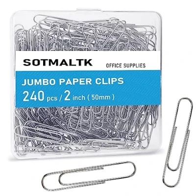 JUMBO PAPER CLIPS - 240pcs 2inch/50mm silver paper clips. RUST-RESISTANT - Our paper clips are made of high-quality metal advanced nickel plating process, well rust-resistant. EASY ACCESS - 240pcs large silver paper clips are stored in a delicate plastic box for easy access. SMOOTH SURFACE - Our big paper clips are made of premium metal durable, a smooth surface won't leave any scratches on the paper. MULTI-FUNCTION - Paper clips can be used as DIY bookmarks, photo album clips, business card holders, and envelope clips.