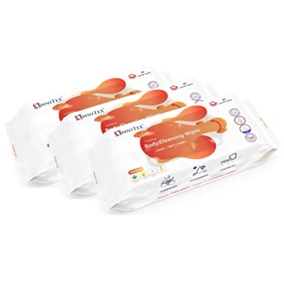 Omnitex Luxury, Thick Full Body Cleansing Wipes. Microveable, Thick & Large with a Honeycomb Texture to offer a softer, luxurious and more hygienic clean. Ideal wipe size to use one wipe for each area of the body : Face, Neck, Chest, Arms, Perineum, Legs, Back & Buttocks. Added Herbal extracts & Vitamins cleanses, nourishes & protects. Lightly fragranced, medical grade premium thick soft cloth-like fabric and generous amounts of cleaning solution provides the user a safe & enhanced cleansing. Dermatologically Tested. Latex Free, Alcohol Free, Parabens Free. ISO9001 registered supplier 3x Pack of 80 wipes, Total 240 wipes