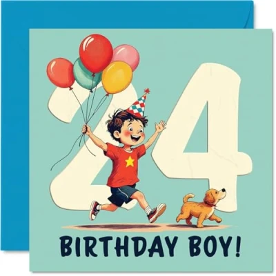 24th Birthday Cards for Men Balloon Boy Happy Card 24 Year Old Man Uncle Colleague Son Brother, 145mm Bday Greeting