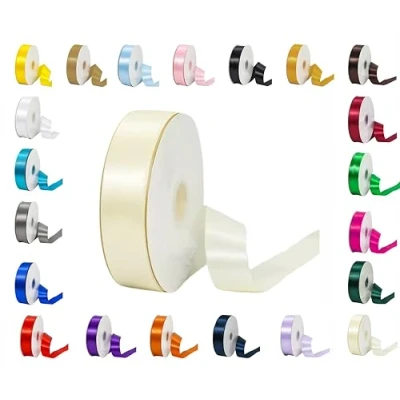 25 Metres Rolls Double Sided Satin Ribbon Reels in Range of Widths & Colours (Ivory, 3mm x Metres)