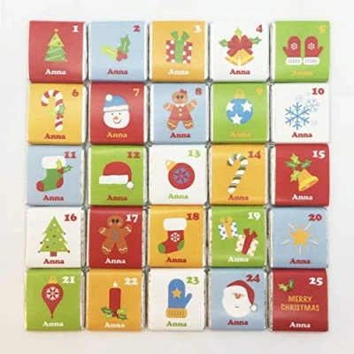25 PERSONALISED Christmas Advent Calendar Milk CHOCOLATE Squares Fillers